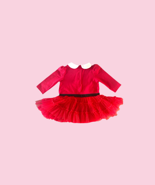 Baby’s First Christmas Dress – Festive Santa-Inspired Outfit