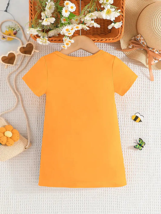 Baby-Girl Cartoon Bee Faux Denim Pattern Dress.